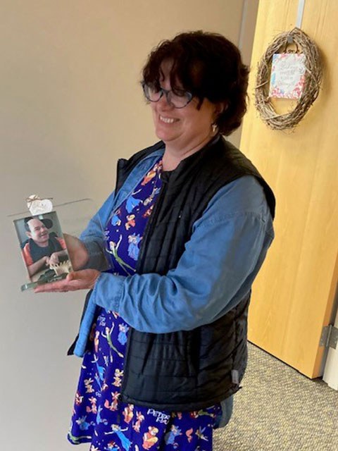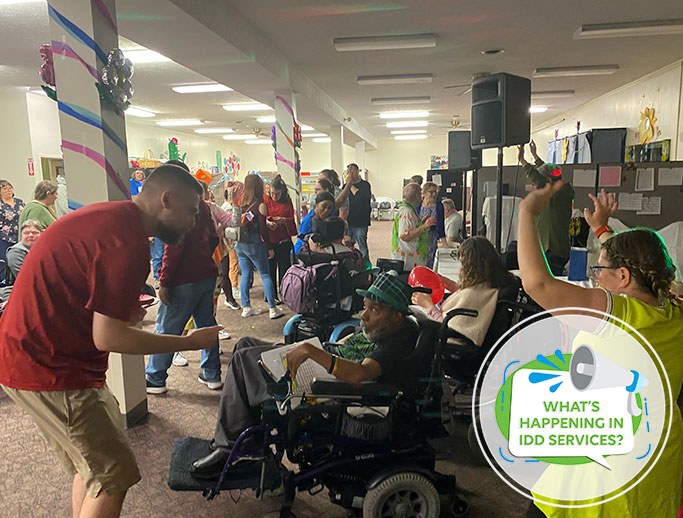 The individuals, family visitors, and staff at Merakey AVS Verree Road in Philadelphia welcomed animal friend, Leo, for an inaugural day of Animal Assisted Therapy on April 12. The individuals exhibited increased physical activity as evidenced by their immediate attempts to extend their upper extremities, as able, to connect with Leo. Miranda, a licensed Occupational Therapist, who accompanied Leo, commented on the gentle quality of the physical interactions, demonstrating the individuals’ innate ability to demonstrate caring. Miranda had previously worked with the individuals at the Verree Road campus during her OT internship with Merakey AVS, which was supervised by Rebecca Stressman, OTR/L. The unique experience demonstrated socialization as Leo walked throughout the Apartments interacting with the individuals and staff, respecting boundaries as necessary. Leo and Miranda’s visit provided companionship, joy, comfort, and smiles. Their interactions made magic with warm fur, a wagging tail, and the compassionate ear of a caring canine visitor. Leo delivered a welcomed sense of happiness to everyone on campus.