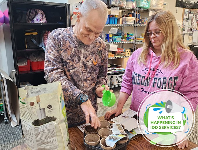 The individuals at the SlippeSy Rock Program Center are eager for spring to begin. A small group went on community participation trip to buy seeds. Kenton and Paul picked out several vegetable seeds such as tomatoes and peppers. They also picked out some flower seeds. Then several areas planted the seeds in a special growing tray to get the plants started for the planting boxes in the sensory garden. They look forward to harvesting the plants in the summer to make homemade salsa to sell. They will use the plants that produce flowers as gifts to celebrate special occasions such as Nurse's Day and Mother's Day.
