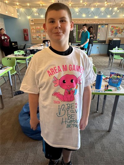 Each year, the Special Olympics holds a t-shirt logo design contest where individuals across all school districts can create their own logos displaying what the event represents to them. Each design has a chance to appear on the Area M Games t-shirt for the upcoming events! This year, Tyler, a student from Merakey Education Center Hampden was selected as the winner! His hand drawn logo will be featured on over 2,000 shirts at the Area M Games on April 24 and will be worn by all athletes, volunteers, and buddies. Tyler and his classmates were also rewarded with a pizza party and a private reveal of the t-shirt! Way to go, Tyler!